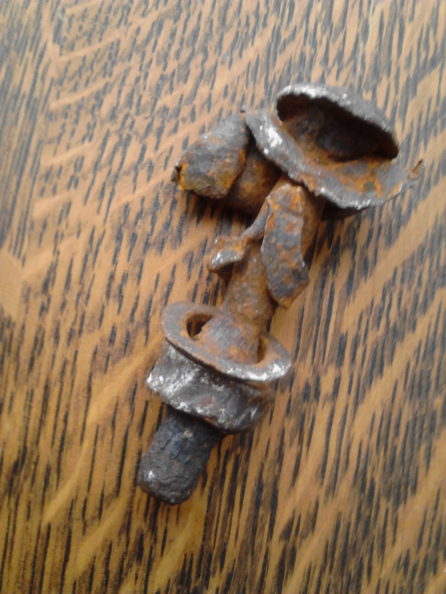 Then a bang, a clank, a clang. Something fell, splashing into a puddle, landing right at my feet. You guessed it. A bolt. It was a gigantic bolt, partially rusted and partially oxidized green. I displayed that big bolt on my bookcase for years.